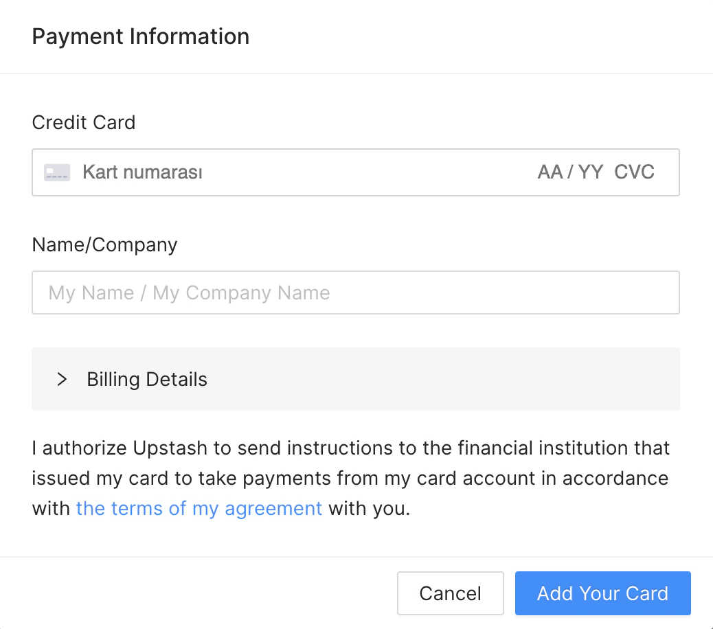 Account from the dropdown menu.Billing tab.Add Your Card button.