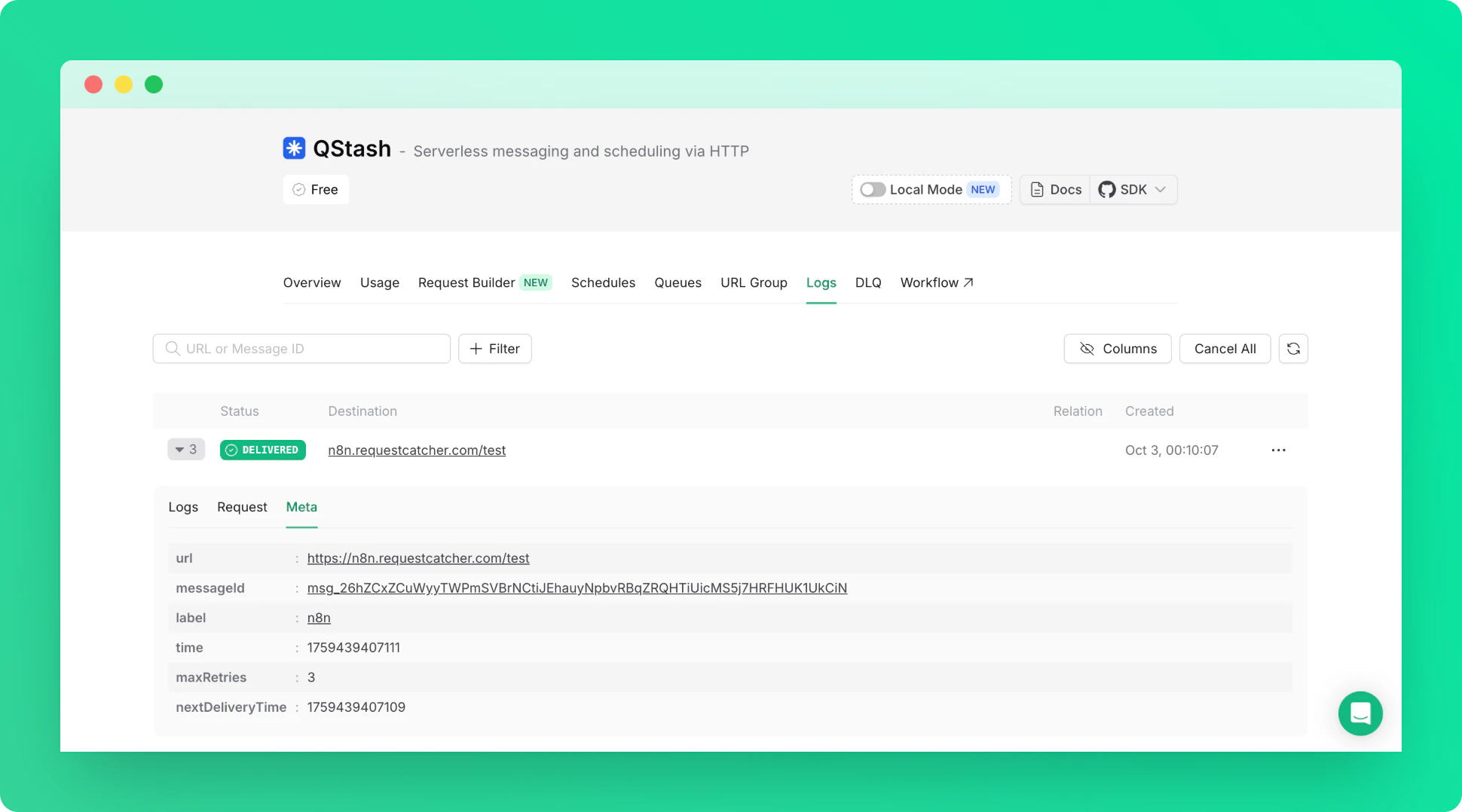 3. That’s it! You can check the logs in the Qstash Console to confirm your QStash Request is working.