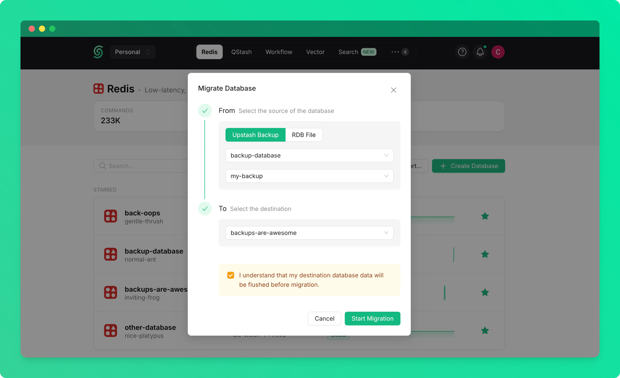 You’ll be able to export your Upstash Redis database as an RDB file for backup or migration purposes.Request an Export