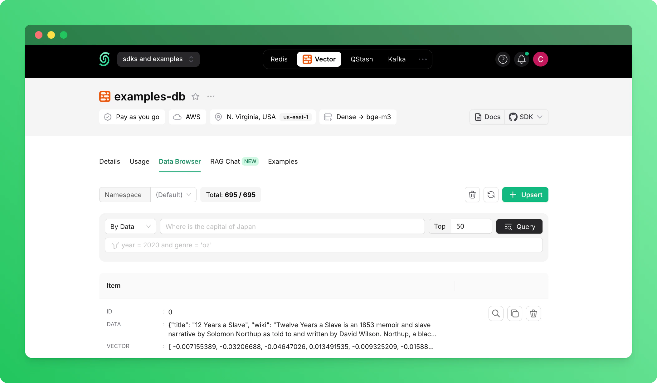 PrerequisiteYou need an Upstash account before creating a vector, create one here.