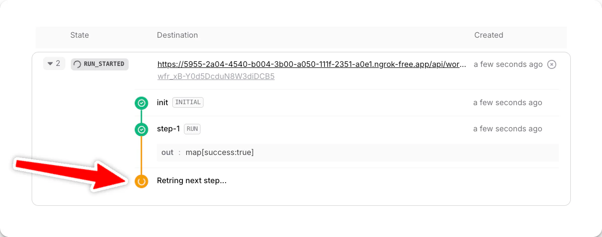 Workflow automatically retries a failed step based on your configuration (by default, it retries three times with exponential backoff). This helps handle temporary outages or intermittent failures gracefully.