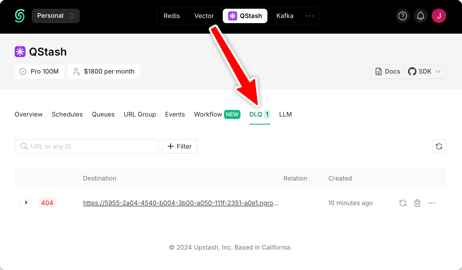 In your DLQ, filter messages via the Workflow URL or Workflow Run ID to search for a particular failure. We include all request and response headers and bodies to simplify debugging failed runs. For example, let’s debug the following failed run. Judging by the status code 404, the Ngrok-Error-Code header of ERR_NGROK_3200 and the returned HTML body, we know that the URL our workflow called does not exist.